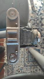 Questa fotocamera vintage è unaZeiss Ikon Nettar, un classico modello pieghevole (folding) prodotto in Germania a partire dalla fine degli anni '30. Caratteristiche del Modello In base ai dettagli visibili e ai risultati della ricerca, la fotocamera presenta queste specifiche: Obiettivo:È dotata di un obiettivoNovar-Anastigmat, solitamente con una lunghezza focale di75 mm. Formato Pellicola:Utilizzapellicola 120per scattare foto in formato6x6. Varianti:Il modello esatto potrebbe essere la serie517/16o518/16, prodotte indicativamente tra la fine degli anni '40 e gli anni '50.