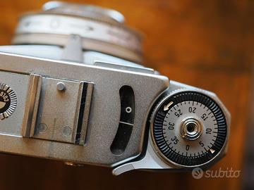 La camera monta pellicole 135mm. Il mirino non è collegato come nelle reflex ad uno specchio, quindi bisogna selezionare la distanza sull’apposita ghiera. Dei simboli (Ritratto – Ritratto di gruppo – Paesaggio) aiutano i meno esperti nella scelta della distanza.