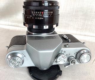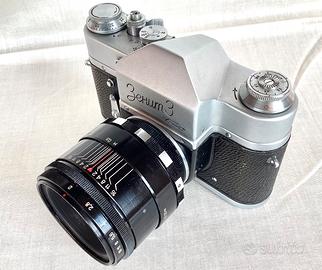 Rara versione di reflex sovietica Zenit 3 anni 60 con attacco a vite M39. Bella e funzionante con pregiato obiettivo Helios 44 58/2 Zebra di Belomo. Lenti perfette,prive di difetti,diaframma a otto lame a preselezione,non olio,messa a fuoco fluida e regolare,ottima estetica vedere foto. Anche separatamente: -Corpo Zenit 3 ....50€ -Helios 44 58/2 Zebra...80€ Insieme 110€