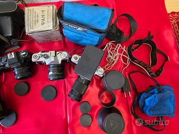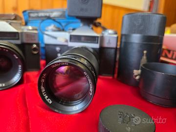 Vendo intero corredo Zenit: Jupiter 21m 200mm con custodia, tappi e tracolla (ottimo) helios 44m 7 con custodia morbida(ottimo) Revuenon 35mm (ottimo) Jupiter 37a 135mm Olimpiadi con paraluce e custodia originale (ottimo) Fan 1 con tappi, adattatori, scatola e libretto. tappi obiettivi e tappo corpo macchina. Borsa zenit (cerniera da sistemare) Tracolla Zenit (ottimo) 3 custodie pronto (2 buone) Flash zenit con cavo e presa di carica originale (buono) 4 corpi macchina (2 funzionanti, 2 da revisionare) Obiettivi perfetti, usati fino a poco tempo fa su pentax k1000. Tolgo per spazio. Prezzo trattabile, no perditempo. Disponibile per qualsiasi prova. Vendo anche separatamente