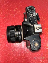 Zenit 12 XP con obiettivo Helios 44M-4 58mm f/2. Macchina fotografica analogica usata, presenta segni del tempo e un po’ di sporco. Venduta come da foto, ideale per appassionati, collezionisti o per restauro. Vendo per inutilizzo.