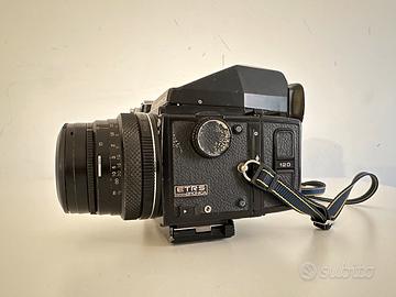 Vendo per inutilizzo fotocamera medio formato Zenza Bronica ETRS con obiettivo Zenzanon 75mm f/2.8, mirino a occhio e impugnatura laterale. In ottime condizioni estetiche con normali segni d'uso, come visibile in foto.