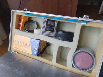 Macchina 4.5x6 usata ma perfettamente funzionante corredata di quattro ottiche due magazzini filtri vari e borsa.controllato esposimetro e otturatore