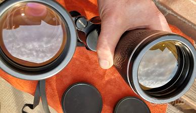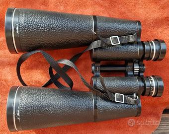 Binocolo militare russo Zomz Zagorsk 20x60 anno 1988 (vedi prime due cifre maricola tappo asse messa a fuoco centrale), solitamente dotazione dei carristi, quindi pre 89, quando la qualità ottica era ancora ottimale. Ottica potente luminosa e perfetta, pulita e collimata, nitido e cristallino immagine incisa e cromatismi caldi e bilanciati, rivestimento antiriflesso su lenti giallino/rosato rarissimo conferisce i giusti cromatismi all'immagine senza eccesso di dominante gialla tipica delle ottiche russe più scadenti degli anni successivi, questo esemplare in particolare ha anche una meccanica perfetta con messa a fuoco centrale priva del gioco eccessivo della rotella tipico dei bino russi perché dovevano essere in grado di funzionare anche a 20 gradi sottozero. Gomme oculari perfette morbide e prive di crepe. Completo di custodia originale, tappi copri obiettivi, filtri gialli antinebbia e supporto treppide raro e difficile da trovare con attacco filetto1/4 o 3/8, su treppiede si possono avere soddisfazioni tanto in utilizzo terrestre che per utilizzo astronomico. Gli unici difetti sono solo estetici esterni di sverniciatura sullo scafo dello strumento, di qui la bassa richiesta se fosse stato perfetto anche esternamente non lo avrei ceduto a meno di 180 eur. Se ne possono trovare anche a 70/80 eur. ma questo è di qualità ottica superiore l'assenza di scritta loghi Tento o Sotem solitamente quelli riservati al mercato civile e per esportazione, ma la sola marchiatura con il logo geometrico di Zomz Zagorsk indica che probabilmente questo esemplare è un ex dotazione militare. Spedisco con imballo a prova di bomba, consegna a mano su Torino e dintorni. Per altre foto o dettagli chiedete pure.