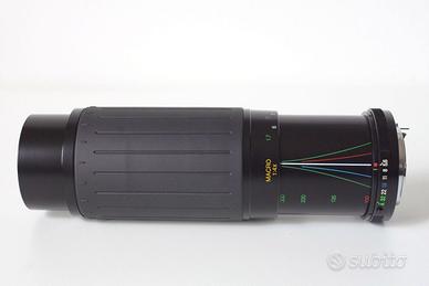 Rimanenza di magazzino, mai utilizzato, testato e perfetto sotto qualsiasi aspetto, completo tappi e imballi originali. Un'ottica leggera progettata in materiale plastico, ghiera messa fuoco manuale integrata zoom a pompa, protezione multi-coating totalmente conservata. Su aps-c risulta 450mm, ghiera diaframma posizione A, innesto PK originale Pentax o compatibili sia digitali che analogiche, applicabile su qualsiasi camera con eventuali adattatori tipo Nikon Canon Fujifilm Sony (non forniti!).