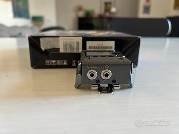 Registratore da Campo Zoom F1 in ottime condizioni. Questa versione è la versione con lo sportellino rinforzato, per evitare che si rompa, sostituito direttamente dalla casa madre. E' presente un connettore per connettere i microfoni di zoom di questa serie.