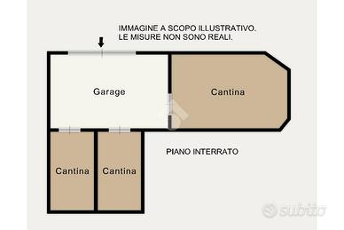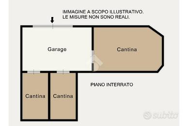 La soluzione, dotata di comodo accesso tramite una rampa esterna, è composta da un locale garage e tre cantine.