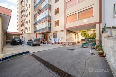 Via Rinaldo Montuoro (via Giuseppe Cosentino, 9) piano terra, tra via Scobar, via Holm e via Pacinotti, a ridosso del Palazzo dei Sogni. Box 30 mq, le dimensioni consentono di posteggiare 2 macchine in parallelo, il proprietario (prima di locarlo) posteggiava contemporaneamente una Porsche Carrera Turbo, una Mercedes Classe A e dietro la Porsche una vespa. Ubicato al piano Terra e con ingresso comodo e riservato sul retro del palazzo. (Rif. T 1113)