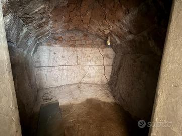 L'ambiente principale è semplice da personalizzare e si adatta a molteplici utilizzi. Nel retro, un dettaglio davvero caratteristico: una piccola grotta, ideale come deposito, zona di stoccaggio oppure come elemento da valorizzare per dare carattere e autenticità al tuo progetto.