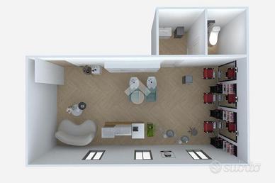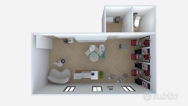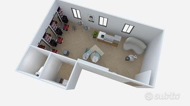 Il locale è di 52 mq complessivi con un ampia sala open space, antibagno e bagno.