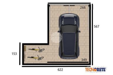 * Larghezza box senza cantina: 349 cmSoluzione perfetta per chi necessita di un box ampio per auto di grandi dimensioni, moto, biciclette o per chi cerca ulteriori spazi di stoccaggio.