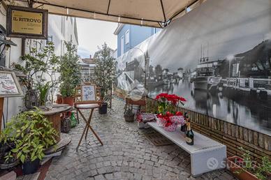 Il locale si presenta in buone condizioni e comprende un ingresso, una sala clienti distribuita su due livelli con vista sul porto canale, un bancone accessoriato e una spaziosa cucina già attrezzata.
