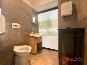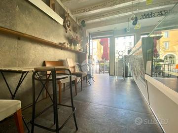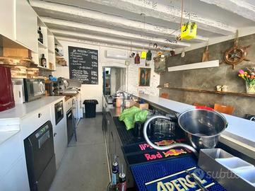 Il locale è composto da bancone, magazzino, bagno per personale e bagno per clienti, posti a sedere interni e ampio plateatico esterno.