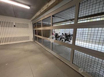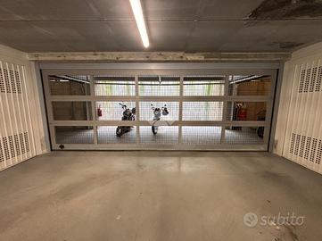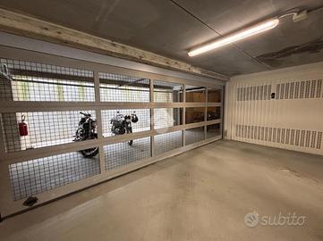 La proprietà è frutto di una personalizzazione in fase di costruzione, e comprende non solo gli ultimi due garage in fondo al piano interrato, ma anche tutto lo spazio che collega i due box. Il risultato è uno spazio di deposito e manovra di proprietà esclusiva e delimitato da una serranda automatica che divide lo spazio privato da quello comune.