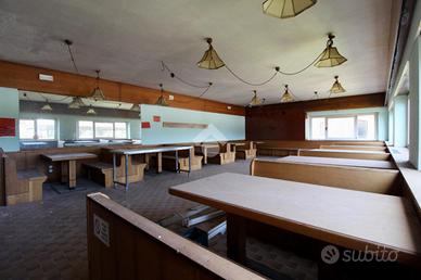 Nella località di Pertegada, frazione del comune di Latisana (UD) che dista circa 5 km da Lignano Sabbiadoro, nota località balneare dell'alto adriatico, troviamo, in una zona di forte passaggio, un complesso edilizio in cui è presente un ristorante (ora in disuso) e quattro appartamenti di diverse metrature (dal mono-locale al quadri-locale) sviluppati al piano primo (ultimo). Il locale commerciale è composto da una prima veranda di ingresso, una sala pranzo ed un'altra sala rialzata destinate alla consumazione di cibi e bevande più una seconda veranda esterna con copertura in legno, e, complessivamente, possono sviluppare circa 250 / 300 posti a sedere. Oltre gli ambienti sopraccitati è presente un ampio bancone bar con retro-banco attrezzato, adiacente ad esso una zona per la lavorazione e cottura della pizza, dotata di piano in marmo e forno a legna. Dal retro-banco si accede direttamente all'ampia cucina finestrata e, da essa, al ripostiglio e ad un disbrigo/magazzino. Quest'ultimo conduce alla dispensa (accessibile direttamente dall'esterno) ed alla veranda, che porta i servizi igienici ed a un giardino interno. Completano il locale commerciale due ampi scantinati a servizio dell'attività ristorativa. Il locale è perfetto per ospitare eventi, ricevimenti, cene di famiglia, incontri di lavoro, visione di eventi sportivi, karaoke e uscite di coppie.