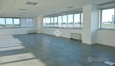 Mirandola - Proponiamo in affitto ufficio open space di 120 mq, di recente costruzione, completo di servizi igienici, con 3 posti auto privati. L'immobile è situato al secondo piano ed è servito da ascensore.