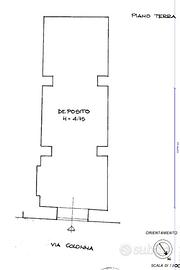 In via Colonna, a pochi passi dal centro servito di Monte Compatri, dove è alta la richiesta di rimesse auto coperte, proponiamo in vendita un locale C2 di circa 80 mq interni, predisposto all'uso box auto in virtù della conformazione dell'ingresso, posto al piano terra e sufficientemente largo da permettere l'accesso di una vettura di medie dimensioni. Internamente, l'immobile è allo stato grezzo e la sua ampia metratura può permettere la disposizione degli spazi sia a scopo rimessa che magazzino. L'altezza della volta a botte di circa 7 metri, inoltre, può permettere un sistema a soppalchi in grado di ottimizzare ulteriormente lo spazio sfruttabile dei vani.