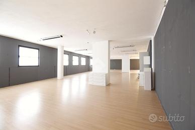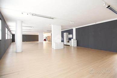 Proponiamo in affitto un ampio locale commerciale di 1170 mq, suddiviso su due livelli. Al piano terra, ben esposto al pubblico grazie alle ampie vetrate, si sviluppa la zona commerciale di 450 mq, completa di uffici e servizi igienici. Al piano superiore si trova un magazzino di 720 mq, versatile e adatto a molteplici utilizzi a seconda delle esigenze. Completa la proprietà un ulteriore magazzino di 100 mq al piano interrato e numerosi posti auto esterni a disposizione.