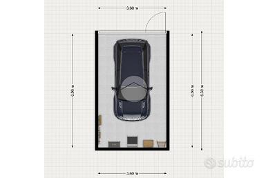 Il box di circa 24mq si sviluppa per 6 metri di lunghezza, 3,60 di largehzza e 2,65 di altezza.