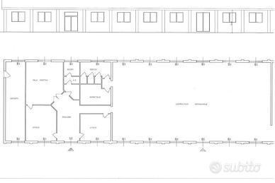 * Secondo laboratorio: 132 mq, collegato al primo e dotato di portone a due ante ad apertura a libro (larghezza 2,90 m - altezza 3,00 m).