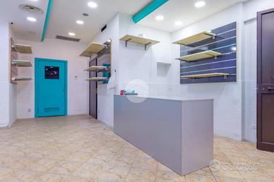 Il locale si sviluppa su una superficie interna di circa 50mq ed è composto da un ampio ambiente principale, un ripostiglio, un antibagno con doppio servizio -- di cui uno conforme alle normative per persone con disabilità -- e un ulteriore piccolo retrobottega.
