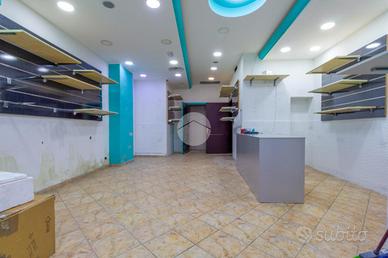 L'ingresso con porta a vetro e l'ampia vetrina su Corso Vittorio Emanuele offrono ottima visibilità commerciale, valorizzando l'esposizione di prodotti o materiali promozionali.