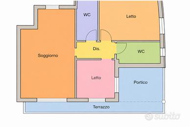3) L'appartamento di 80mq è composto da soggiorno/pranzo di 28mq, due camere da letto, due bagni, disimpegno e ampia balconata, Box auto incluso nel prezzo.