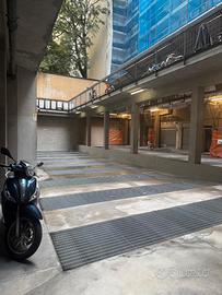 Affittasi box piano interrato -1, con basculante elettrica e pannelli protettivi a muro, comodo spazio di manovra.