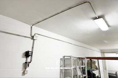 Si accede al box tramite un ampio cancello elettrico comune e una rampa.