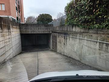 Accesso carraio da cancello scorrevole dotato di apertura elettrica con chiave magnetica e telecomando. Larga rampa di discesa/salita. Il box auto è situato al primo piano interrato, comodo ultimo al fondo corridoio. Porta basculante. Serratura standard e pozzetto di predisposizione per eventuale lucchetto di sicurezza. Provvisto di luce e presa di corrente. Dimensioni utili lunghezza=4,90 larghezza=2,50 altezza=3,20. Praticamente privo di sporgenze di colonne portanti. Grazie alle generose dimensioni in altezza è stato ricavato un piccolo soppalco al fondo del box. Disponibile da subito libero e svuotato.