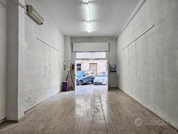 Locale commerciale della superficie utile di mq. 60, con 1 vetrina fronte strada , serranda con motore elettrico, impianto di illuminazione e bagno, in corso di cambio di destinazione d'uso da negozio (C/1) a box auto (cat. catastale C/6) con relativo nuovo accatastamento e sistemazione del marciapiede per l'accesso con passo carrabile.