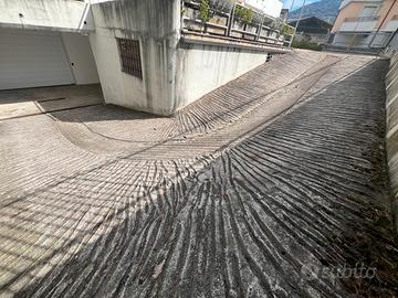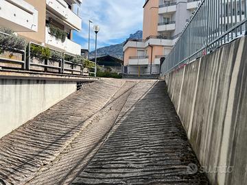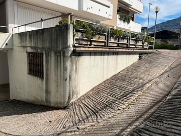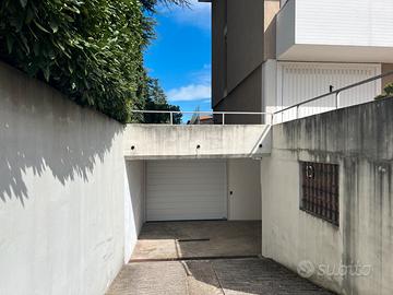Box auto singolo a piano interrato con accesso tramite rampa esterna.