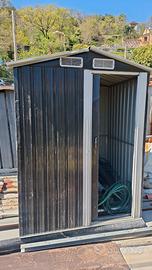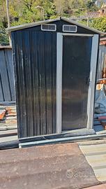 Casetta da Giardino 1.7m² in Acciaio Zincato , Capanno da Giardino Porta Attrezzi con Tetto Inclinato, 4 Prese d'Aria, Porta Scorrevole, 152x132x188 cm, Grigio Scuro. comprata 6 mesi fa . come in foto . vista e piaciuta, trasporto non incluso.