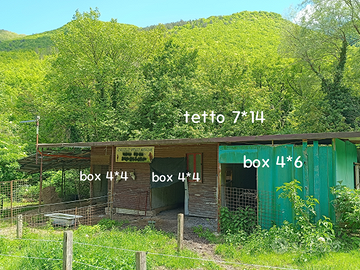 Vendo struttura prefabbricata smontabile da subito con pannelli coibentati, struttura in ferro, composta da: 2 Box 4*4 più 1 box 4*6 ricoperti con tavole in legno, più tetto pannelli finto coppo 7*14 smontaggio e trasporto a carico dell acquirente