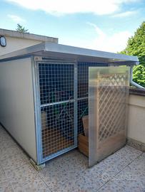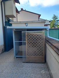 Vendo box coibentato su 3 lati e tetto,fronte in rete zincata con cancelli chiudibile, sotto in kegno trattato scorrevole x pulizia, con rifiniture x acqua e vento. In ottime condizioni. H. Max 150 come da legge.