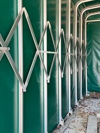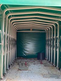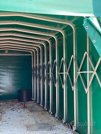 Box tunnel estensibile con guide e telo rinforzato per auto o camper.