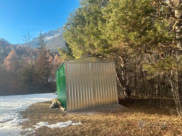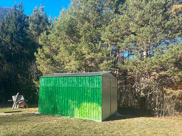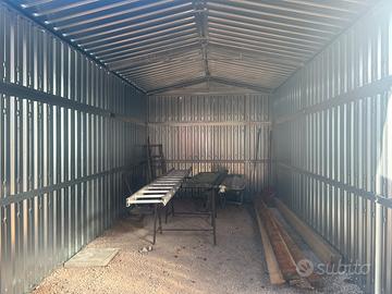 Vendo box in lamiera zincata m. 5,15x3,16 altezza porta m. 2,70 con capriate di rinforzo, semi muovo come da foto. Senza basamento struttura in tubolare tetto in lamiera grecata.