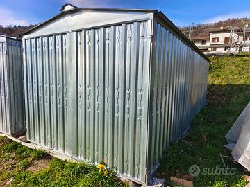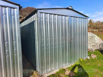 Box in lamiera zincata, lunghezza 6 mt, larghezza 2,5 mt, altezza 2 mt al cancello, in ottimo stato, il prezzo si riferisce al singolo box, disponibili per il momento 2 pezzi, disponibile anche uno misura 3,5 mt lunghezza, 2,5 larghezza, 2 mt altezza al cancello, semi nuovo in ottime condizioni 6 mesi di vita, al prezzo di euro 800, il box e stato rinforzato tutto, sulle saldature con rivetti aggiuntivi, sulle pareti laterali con rinforzi in ferro zincato e bulloni e sugli angoli con bulloni e angolari, ottimo per stivare legna da ardere ecc, capienza 19 metri cubi se riempito fino al tetto, con possibilità di trasporto previo accordo.
