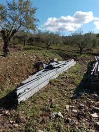 Struttura in ferro zincato per uso deposito/box o magazzino ,chiusa su tre lati di circa 56mq con altezza utile di 5m da ritirare in sede € 2200(trattabili)
