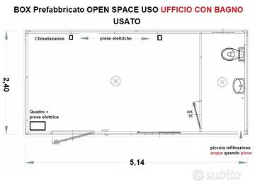 BOX prefabbricato OPEN SPACE modificato con climatizzatore, impianto elettrico modicicato con tre prese, plafoniera modificata e quadro elettrico per luci interne ed esterne