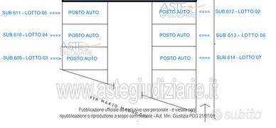Vendita all'asta Senza incanto, con gara telematica asincrona - LOTTO 4: Piena proprietà di posto auto segnato. Prezzo base € 2.954,00 (offerta minima € 2.216,00). Data inizio operazioni di vendita: 23/01/2026 ore 11:00.