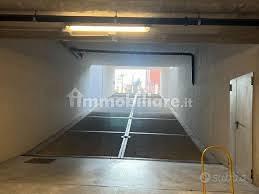 Ampio box arieggiato da una parete con griglia parzialmente coperta da un pannello di plexiglas trasparente, accesso anche tramite ascensore.