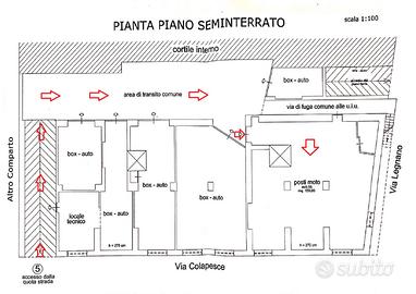 La larghezza della saracinesca d'ingresso al garage permette solo il passaggio di moto e scooter, vista però l'estensione dei locali (mq. 159) si possono parcheggiare comodamente oltre 25 moto, quindi vi è la possibilità di avviare un'attività remunerativa immediata.