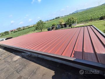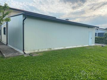 Vendo struttura mobile addossata in ferro zincato realizzato con copertura di pannelli sandwich coibentati con relativa grondaia il tutto in buono stato. Lunghezza 12mt larghezza 5 mt superficie 60 mq, altezza pilastri 3,5 lato alto 3 mt lato basso.