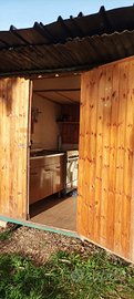 Casa mobile metri 6 x 2'50 , composta da soggiorno,camera da letto e bagno, esternamente cucina completa con lavandino, fuochi e frigorifero.
