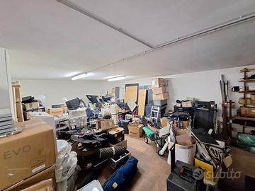 ampio garage / magazzino di 100 mq totali, pavimentato, dotato di impianto di illuminazione e situato al piano interrato in contesto condominiale.