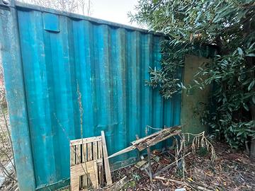 Associazione a promozione sociale vende container marittimo 6 mt ben tenuto con porta aggiuntiva sul lato e scaffale interno in metallo. Possibilità di trasporto da concordare a parte.