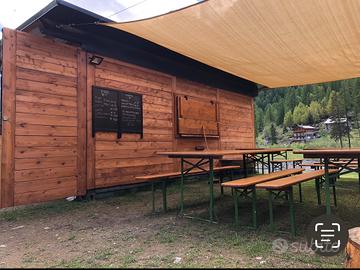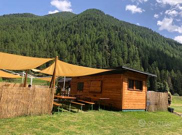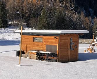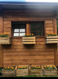 Vendo container rivestito in legno di larice tetto in lamiera smontabile Misure 6mt x2.40 3 finestre Interno rivestito osb