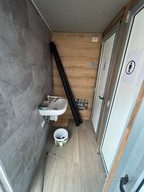 Monoblocco 3x2,40 completo di 3 wc, 1 con accessori disabili e mensola per cambio pannolini. L'anti bangno con lavandino e rubinetto dayson.