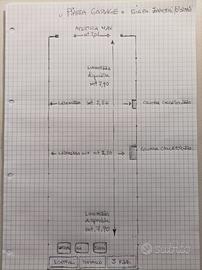 La parete di fondo è occupata da una scaffalatura profonda 60 cm, utilizzabile al 60%.